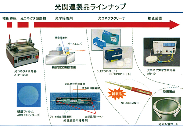 | Optical-communications parts Ferrule(SC・ST・APC・LC・MU) Ceramic Sleeves For Fiber Optic Adapters(SC・ST・LC・MU) Plug Housing Adapter Fixed Optical Attenuator Conversion Plug Optical Terminater SC type Simplified Receptacle MU type Simplified Receptacle Optical Fiber Interconnection Cord Optical-communications equipment High-speed centrality measurement of the ferrule Optical connector polish machine Optical connector characteristic measuring instrument PLC automatic center regulator PLC measuring device Optical-communications consumables Piano wire for ferrule polish The pin gauge for a ferrule inspection The core pin for ferrule metallic molds Polishing film Optical connector cleaner The matching block for reflective measurement |